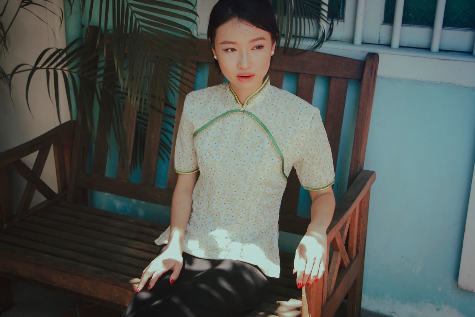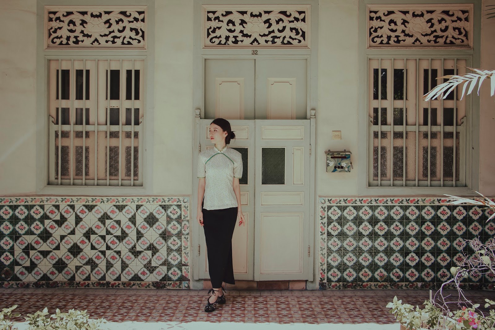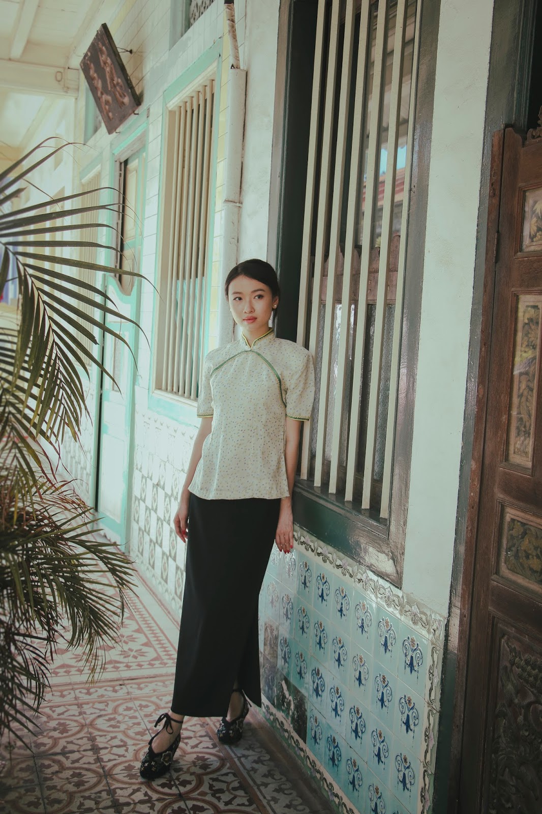 Thankfully, some make their lifelong mission to keep the tradition alive. The clothing items I'm featuring in this lookbook are sold by Lucia Chiang, a kind and bubbly elderly lady. However, due to rising rental fees, Lucia was 'forced' to move out of her boutique La Vie (originally at Orchard Towers) last August. Since then, Lucia has been struggling to continue business in her little 130-year old heritage shophouse at Spottiswoode Park Road. During our conversation, I learnt that she's had more than 30 years of experience selling and tailoring Cheong Sums.