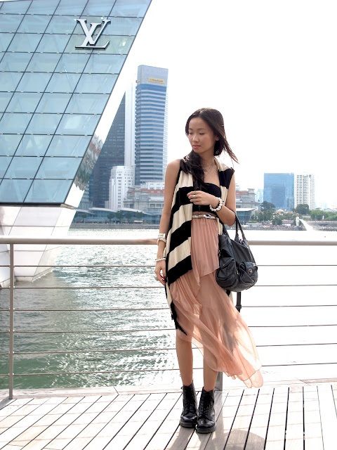 I kept my outfit very simple, drawing all attention to the accessories. My spiked bracelets and clutch look lethal don't they? The dress I'm wearing is so old - me being its third owner. Despite its luxurious material, I see myself wearing it on an everyday basic because it's so comfortable to move around in. It does not have the most flattering cut but it hides any bulge after a heavy dinner. ;)
